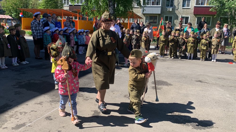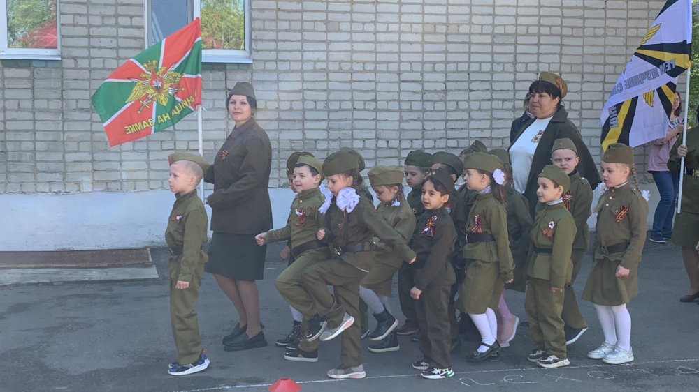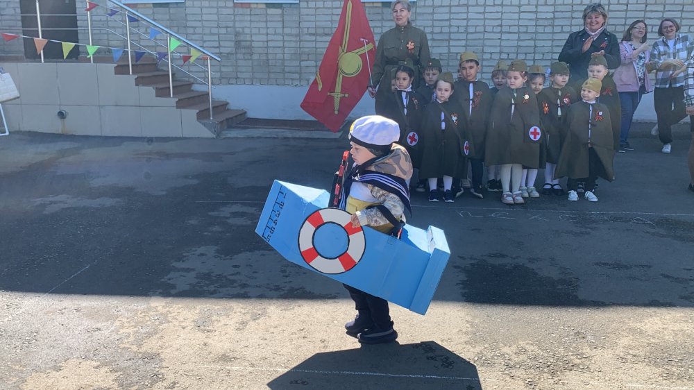 В предверии празднования 80-й годовщины Победы в Великой Отечественной войне в нашем МБДОУ прошёл парад.В шествии участвовали ребята и их воспитатели.Маленькие солдаты, пограничники, пехотинцы, танкисты, моряки, связисты, кавалеристы маршировали с серьёзными лицами, словно понимая всю тяжесть пережитого их прадедами. В их глазах отражалась память о тех, кто отдал свои жизни за мирное небо над головой.